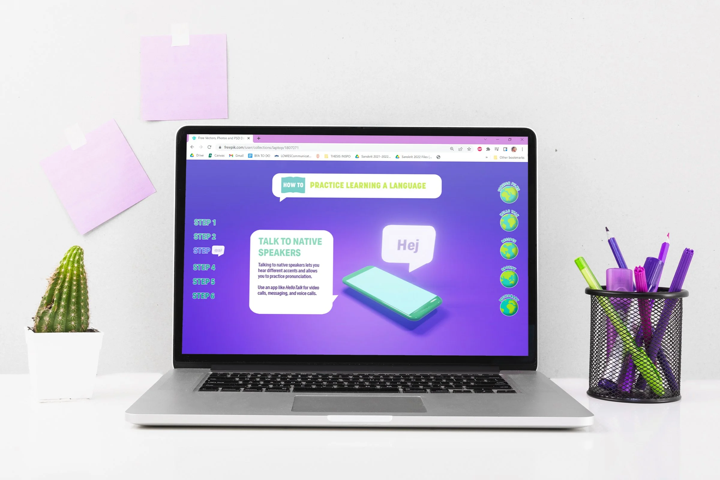 After researching the most effective ways to improve fluency, I created six actionable steps students can take to implement language practice in their regular routine. To supplement those tips, I also added external links to helpful resources.